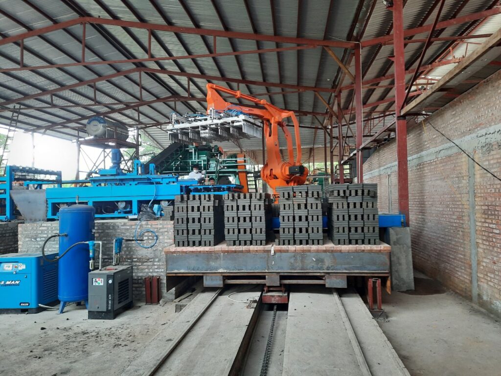 Thiết bị bốc xếp: Bàn tổ hợp đơn, 01 robot 800 kg, hệ thống kéo goong tự động.